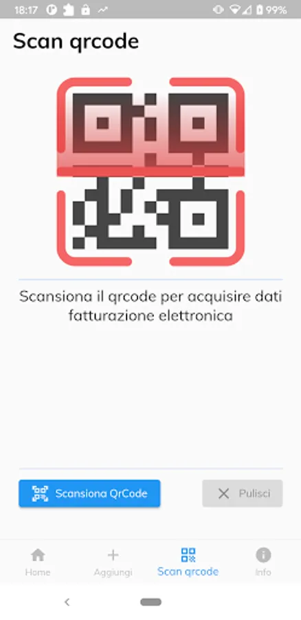 - Manual and automatic entry from QrCode using the standard defined by the Revenue Agency for Electronic Invoicing