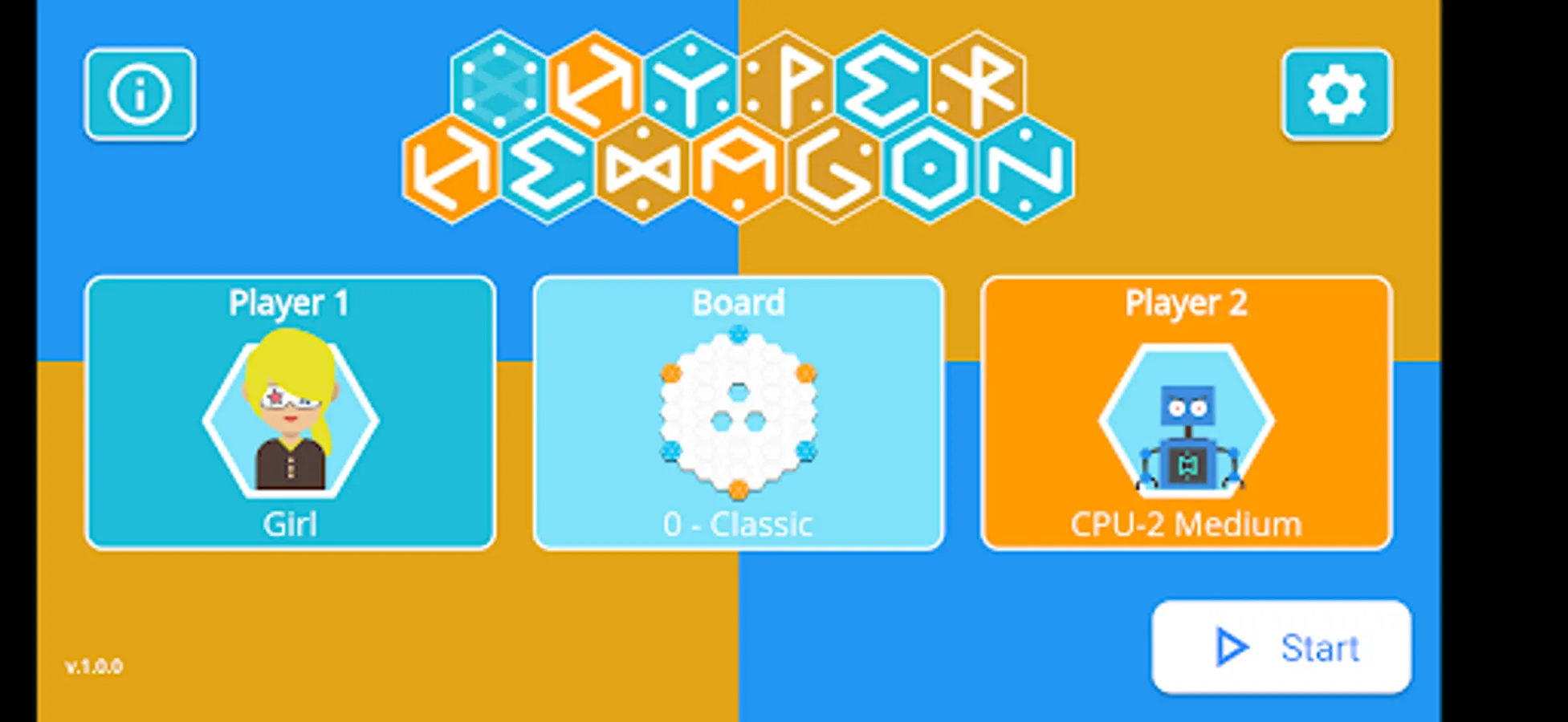 Play with another player or versus Artificial Intelligence.