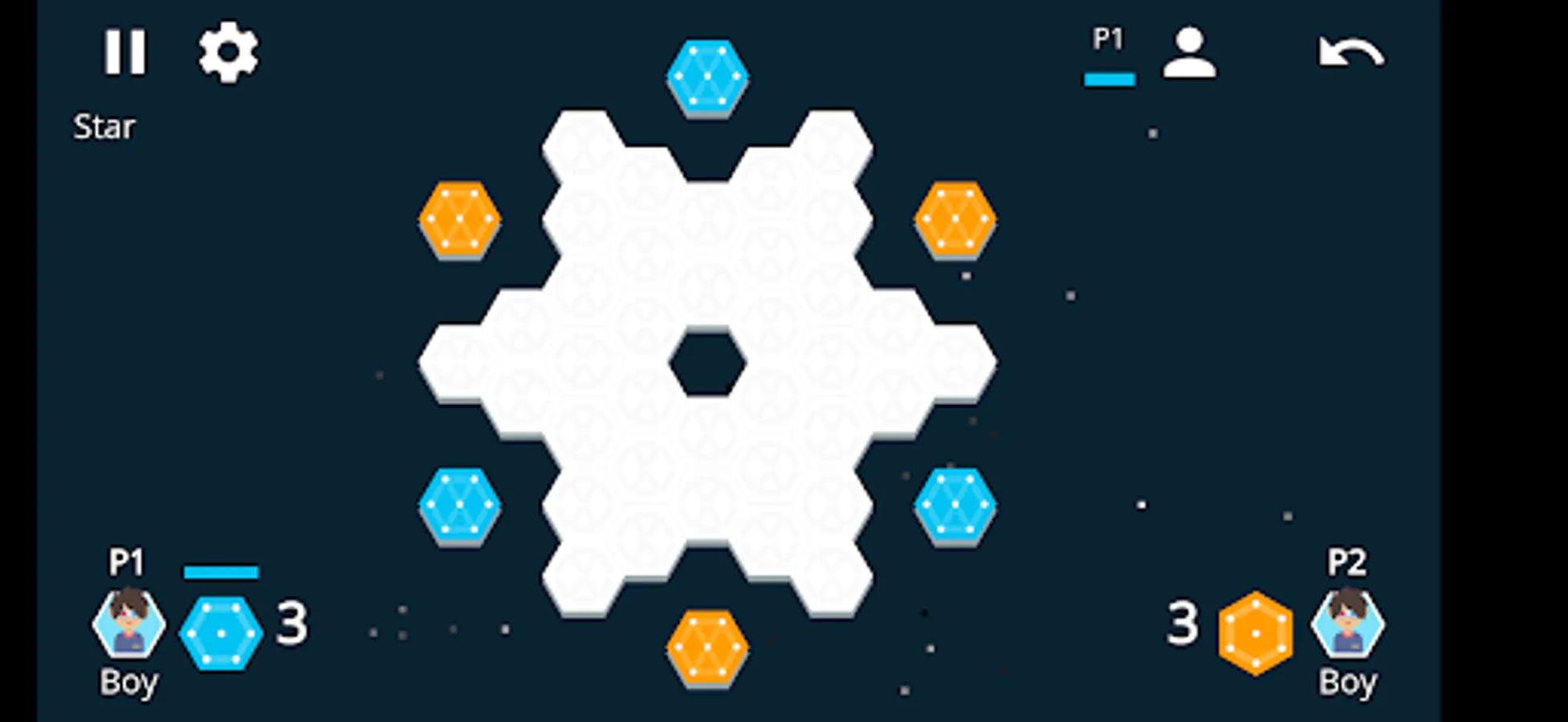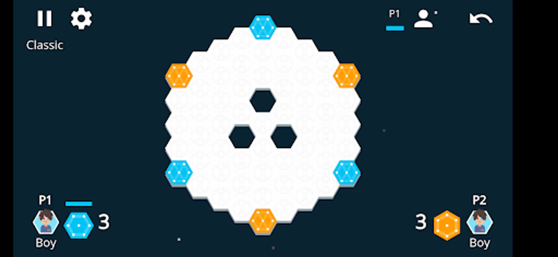 Inspired by the old classic Hexxagon '90s game.