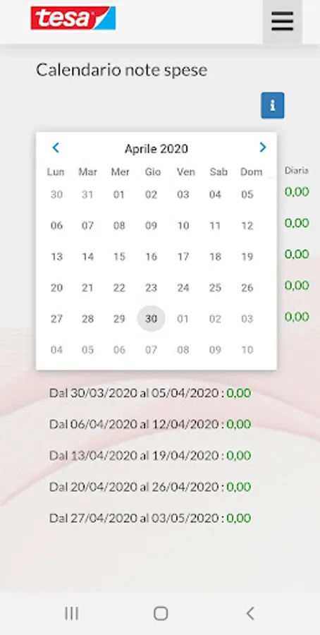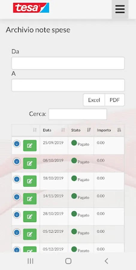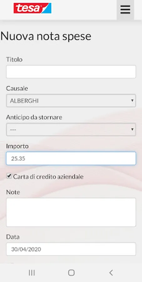 App for the management of Tesa employee expense reports: insertion of vouchers, daily billing, advance requests, approval and fulfillment of payments, SAP and Payroll management reports and exports