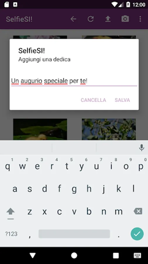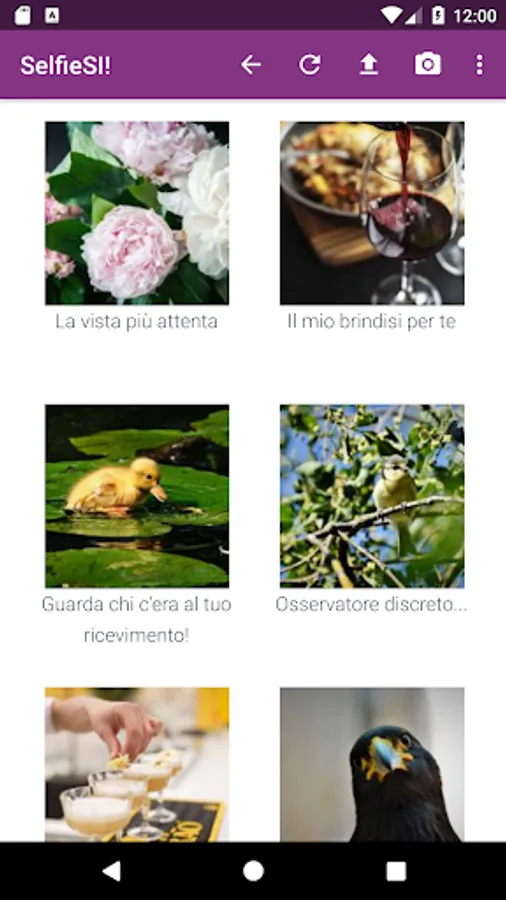 The app allows you to take new photos (which still remain on the device) or to upload photographs by selecting them from the device. Each photo can contain a dedication or a personalized message.