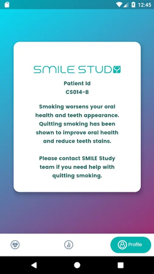 The SMILE app is available just for Android users that are enrolled in “SMILE STUDY”, an 18-month duration clinical study supported by COEHAR.
