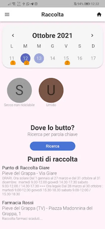 When I throw it, where do I throw it: it gives an indication of what and by what time to throw it the day after the current one and shows a list of commonly used materials and indicates how to dispose of them. It is possible to set an alert to be notified