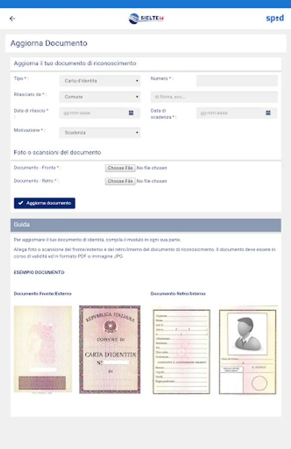 Please note: to use the App, you must have requested and activated your SielteID account from the site registered.sielteid.it