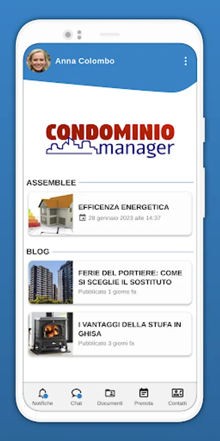 Register by entering the code that the condominium administrator gave you and use the Condominio Manager app to: