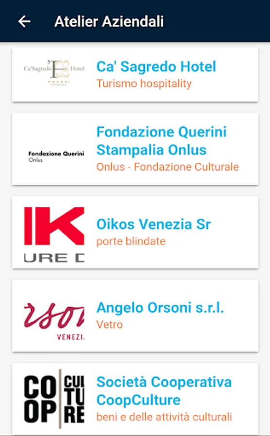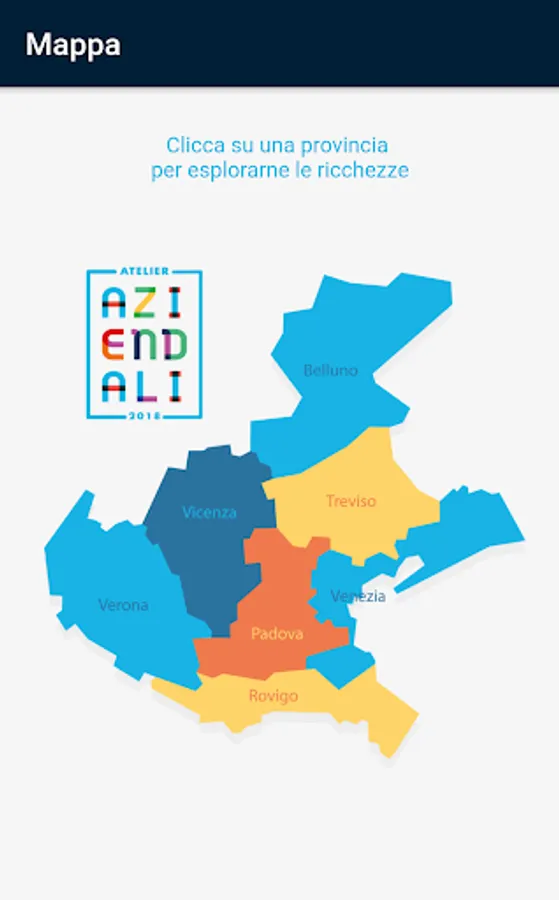 The App Atelier Aziendali App is an informative App aimed at disseminating the excellent artistic and cultural heritage of the Veneto Region, the corporate assets of the territory and the events planned within the Open Day Factory.