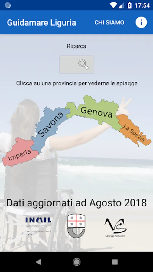 The Regional Council for the protection of the rights of the handicapped person and the INAIL Regional Directorate Liguria in collaboration with the Liguria Region, Department of Tourism, present, with this publication, the results of the mapping of the Ligurian beaches accessible undertaken in 2014 and updated in June 2018 .