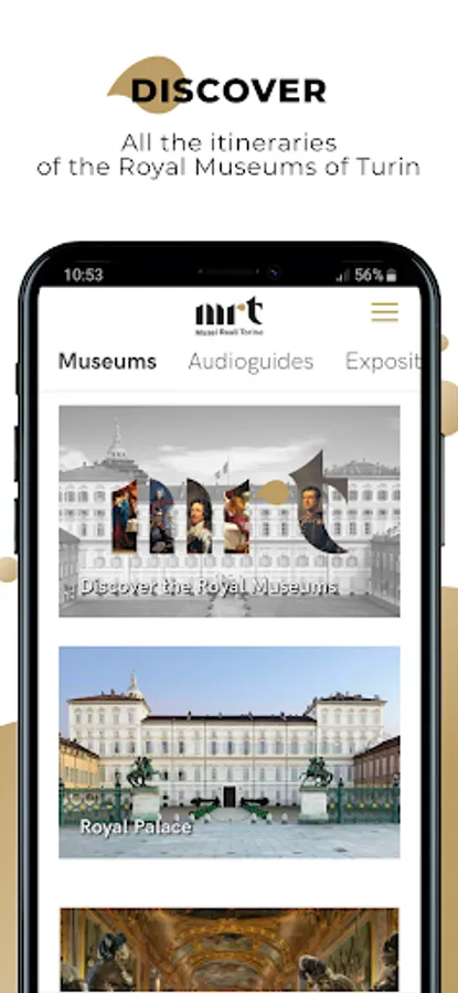 MRT is the official App of the Royal Museums of Turin, which are located in the heart of the old city and give a fascinating insight into the city's history, art and nature, over a floor space of 55,000 square metres with exhibits dating from Prehistory to the Modern Age.