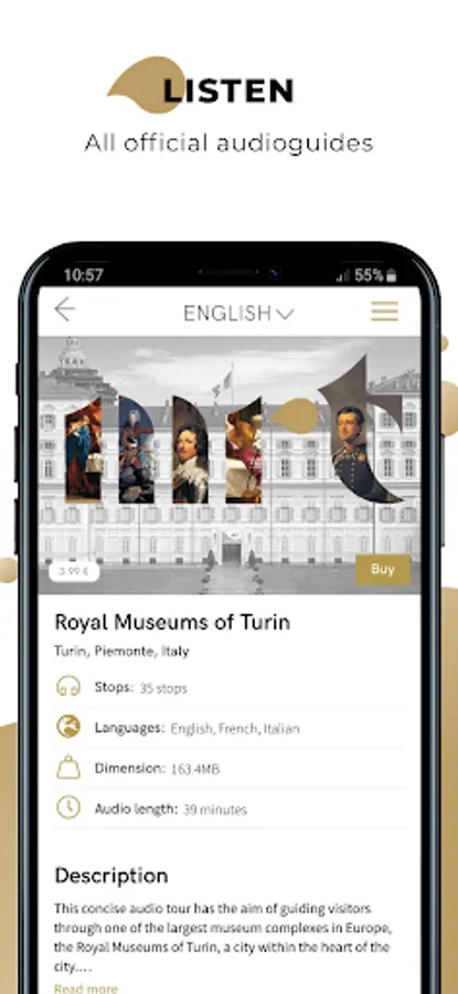 3) ENHANCE your visitor experience, with free previews and Premium audio guide contents available, for a fee, in different languages;