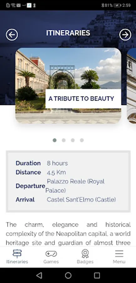 With this App you can organize your trip to Campania, play and earn badges, with the aim of discovering the wonders of the area in a new, engaging and intuitive way.