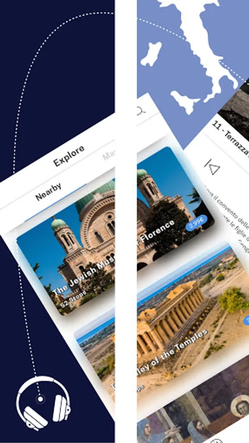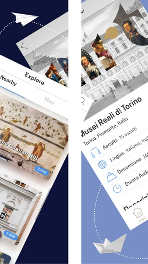 You can DOWNLOAD the APP FOR FREE and have access to the list of audio guides provided, some free of charge and others requiring payment. After selecting the product, a general information screen with a trial audio will appear. If it is to your liking, you can purchase it.
