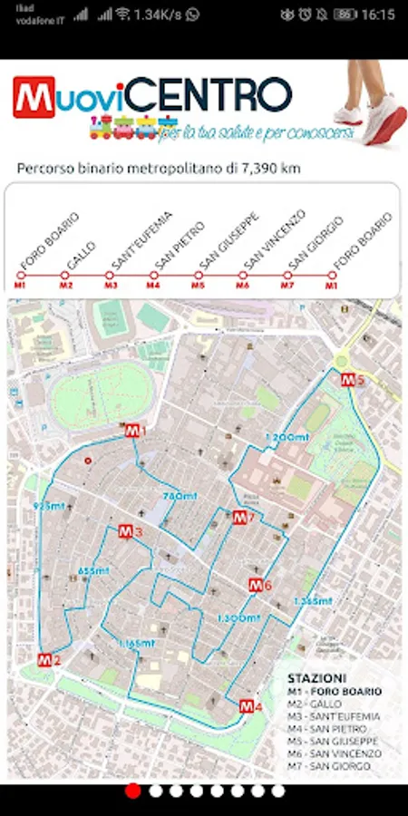 MUOVI is the PEDESTRIAN URBAN METRO developed by the best pedestrian / circular ring route in the center of the municipality or of the
