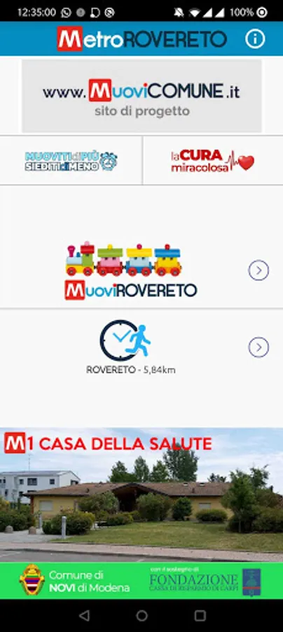 • MuoviROVERETO for the physical exercise of fast walking or slow running on the pedestrian urban subway, a "life path" protected and away from high traffic roads traced in the capital Novi of the Municipality of Novi di Modena, in the residential and densely populated part.