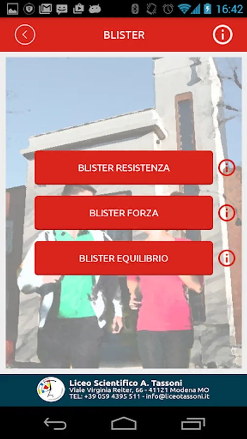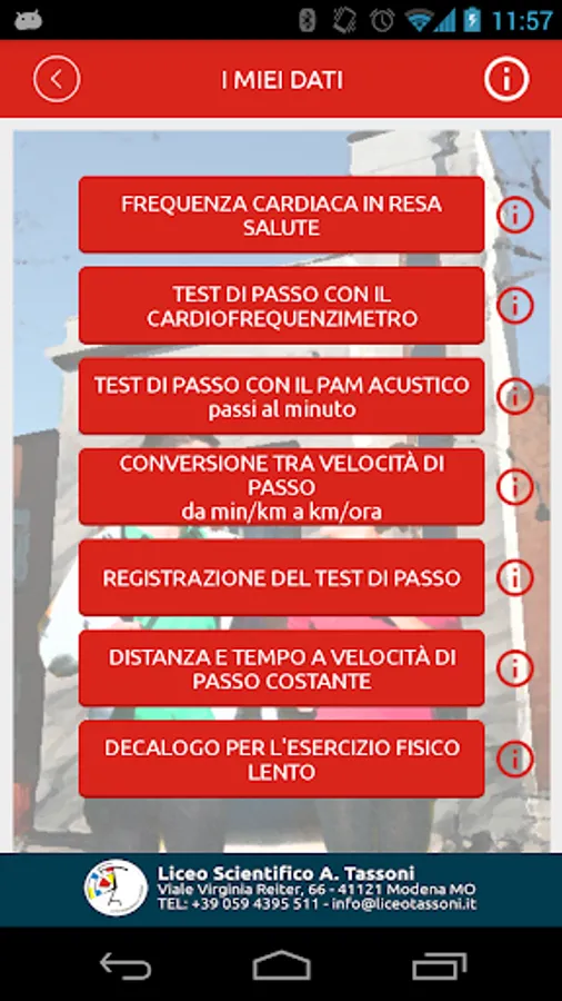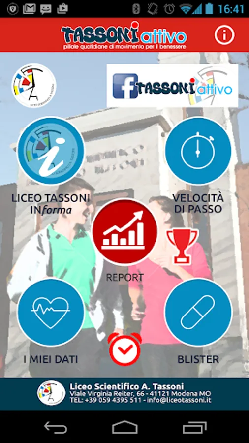Therefore the Scientific High School "Alessandro Tassoni" accepts no responsibility for physical injury and / or property arising from the execution of the exercises and / or training programs referred App active TASSONI.