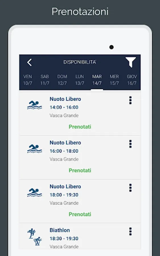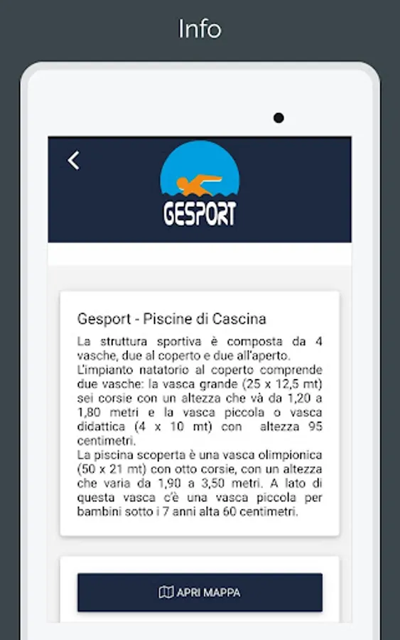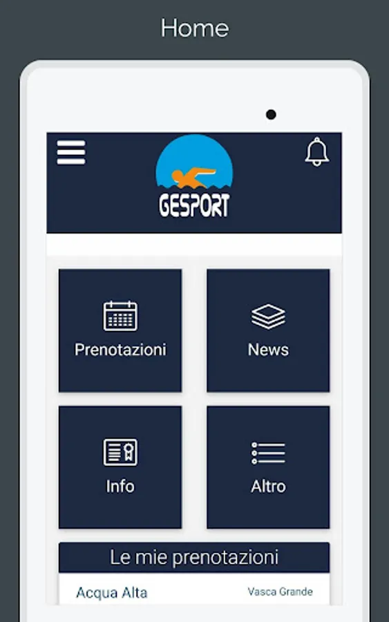 Application dedicated to members of the sports center "Gesport - Piscine di Cascina"