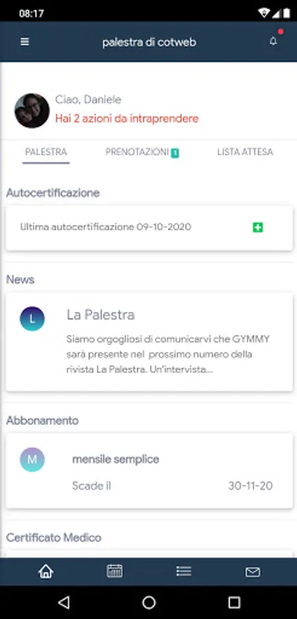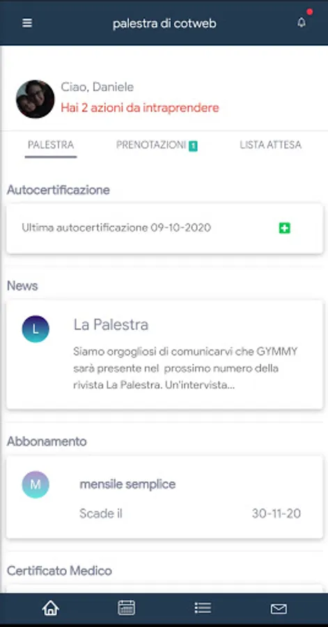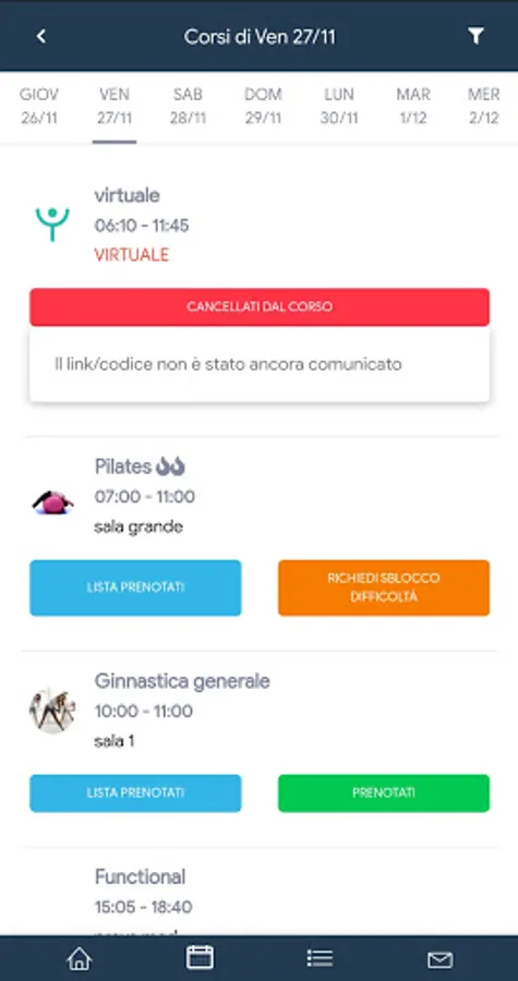 - manage your bookings with a simple tap (waiting lists, levels of difficulty)