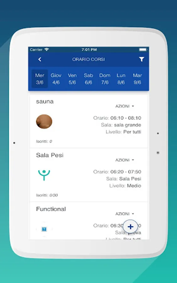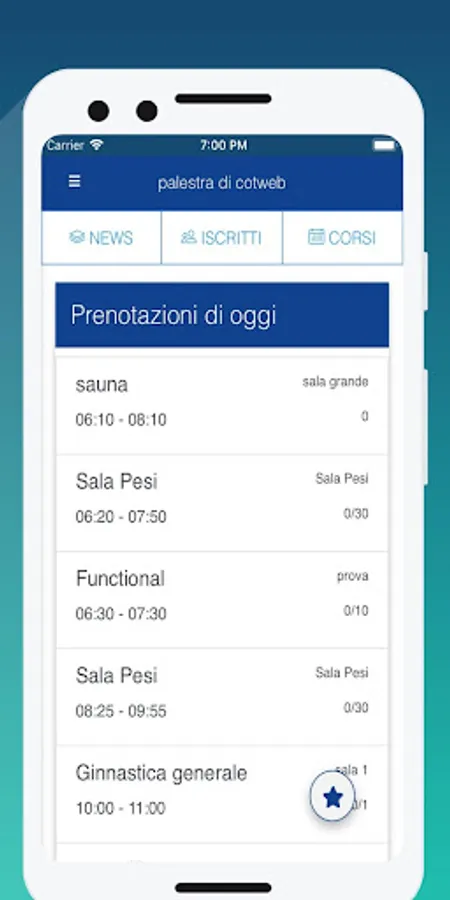 Mobile version of the GYMMY admin panel. The app is reserved exclusively for managers of gyms / structures registered on the GYMMY circuit.