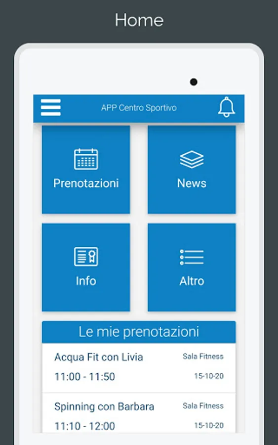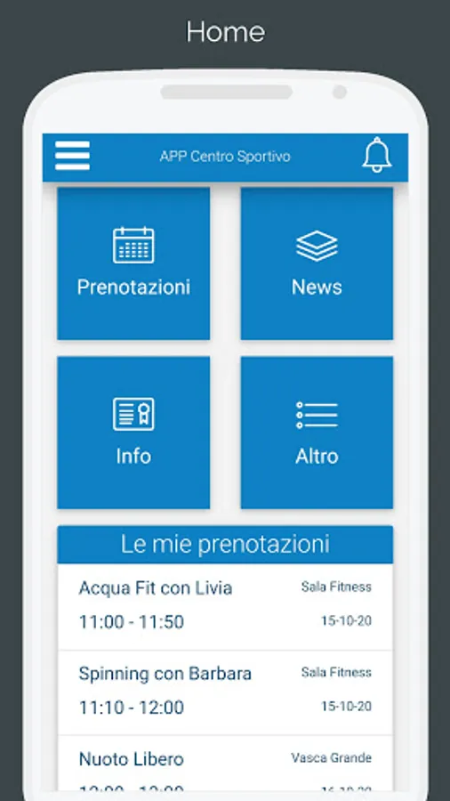The APP allows the user to interact with their sports center. Here are some of the main features: