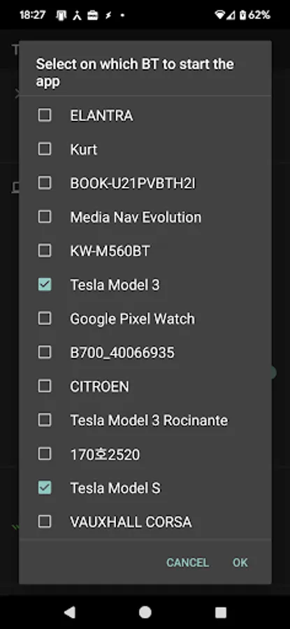 - Um die App zu nutzen, stellen Sie sicher, dass Sie das BT von Tesla aus der Liste der BT-Geräte auswählen,
