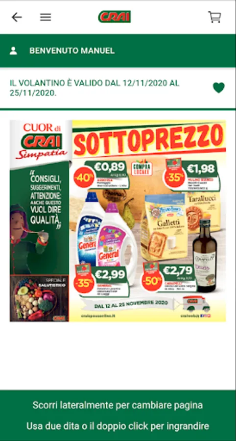 With the CRAI app, you will always have all the information you need to stay up to date with the CRAI news and your favorite CRAI supermarket, find out about current offers, always carry your digital Carta PiΓΉ with you, get to know your points balance for current collections and exclusive promotions for Carta PiΓΉ holders. You will also be able to learn about all the special initiatives related to the world of sport and activities related to CRAI's partner non-profit organizations and much more!