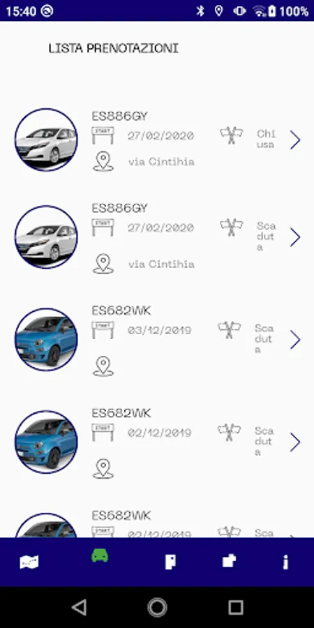 - The rental session can be ended by parking the car in the blue stripes or alternatively, if the car had less than 50km of autonomy, inside the partner car parks by hooking the car to the charging infrastructure. For this collaboration, the user will receive a bonus that can be spent on subsequent races. The Bonus will also be recognized to the user who collects the car for the rental session in one of the partner car parks.