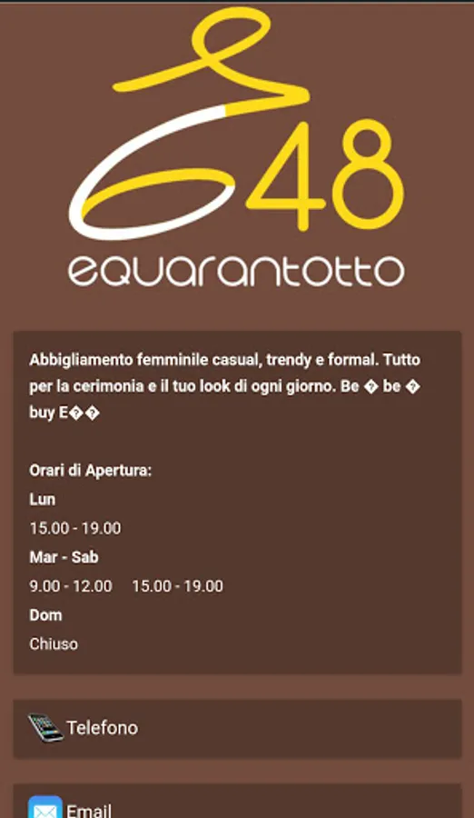 Equarantotto Dresscode & Lifestyle is a clothing store in Morbigeno that offers casual, trendy and formal women's clothing. Everything for the ceremony and your everyday look. Thanks to our new personalized app you can always be updated on all the new arrivals, on the news of our brands, on our promotions and special events. There will also be a function dedicated to the online shop and many other very interesting news for our loyal customers.