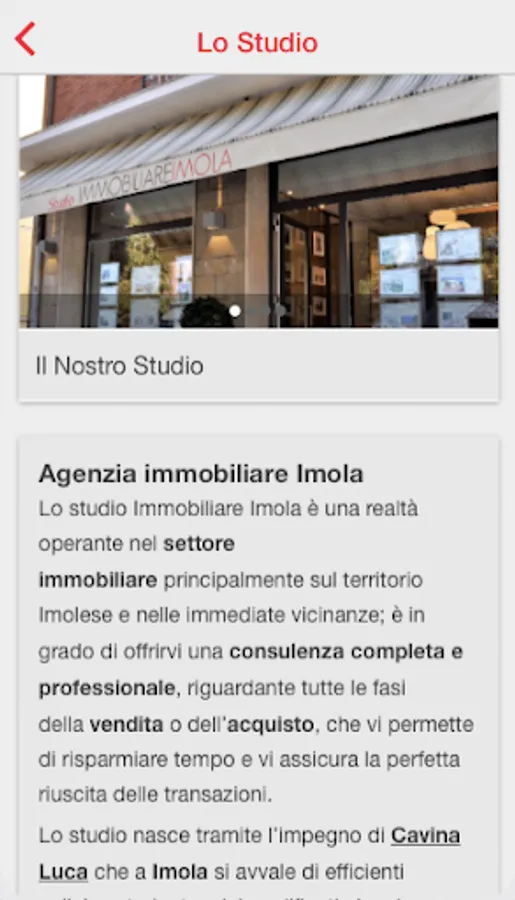 The studio was born through the commitment of Cavina Luca who in Imola makes use of efficient collaborators and qualified technicians who will guide you on the path to choosing your property, through lands rich in history and traditions.