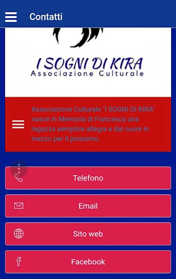 The application is owned by the association I SOGNI DI KIRA which is managed and modified in any aspect, serves for knowledge of the same association to make users aware of what it does, the scheduled events and news of the percossi of the same association .