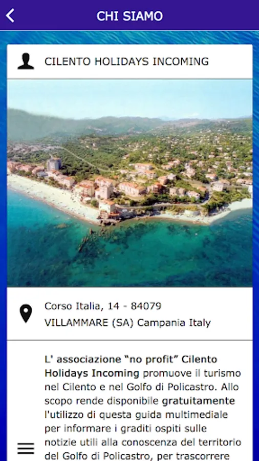 The free App "Cilento-Gulf of Policastro, uses geo-location to allow you to know and reach all the points of tourist interest in the Cilento and the Gulf of Policastro. Cultural tours, panoramic tours, sea excursions, trekking, sports, adventure, food and wine activities and services. Useful for those who want a holiday tailored to their own interests, to consult before the trip because it provides all the detailed information on the territory and the many services that it offers. The application for those who want to optimize the holiday by establishing the itinerary, choosing the monuments, the attractions to visit and the facilities for the stay.
