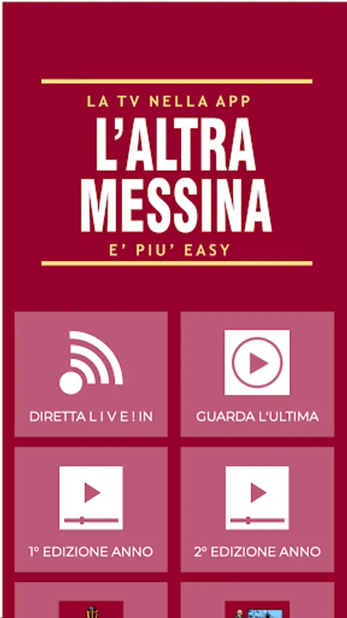 Download the broadcast app L'altra Messina broadcast on Tremedia, RTV, Soverato 1, Region Network, Tele Magna Grecia and Tempostretto.