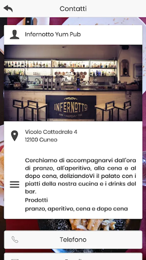 Download Infernotto. Discover our menu and order our dishes and drinks by receiving them directly at your home in Cuneo and the surrounding areas or book a take away service. You can also book a table to avoid queues and contact us for information.