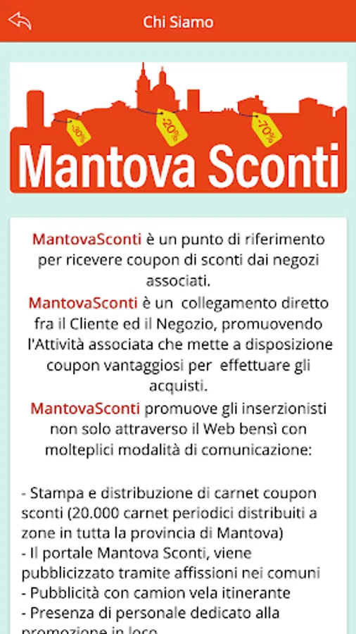 Mantova Discounts is the application that allows you to discover the best offers in Mantova and its province.