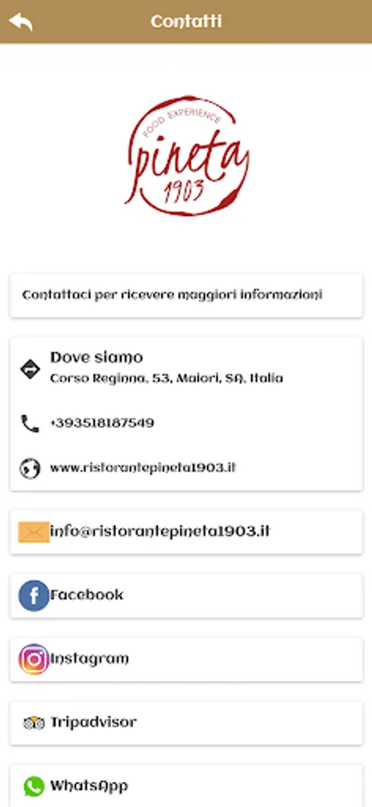 You can book a table in a few steps and immediately receive confirmation, receive promotions and offers, subscribe to the prestigious Fidelity Club of our restaurant, read all the information about our restaurant, watch video recipes of our traditional dishes and seafood from the Amalfi Coast.