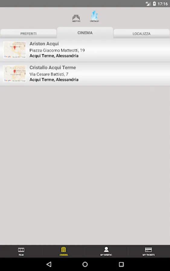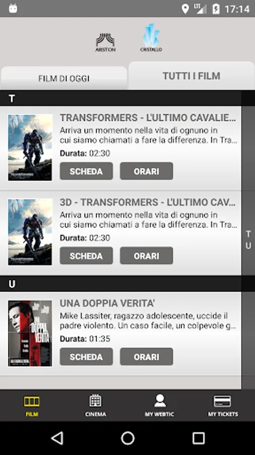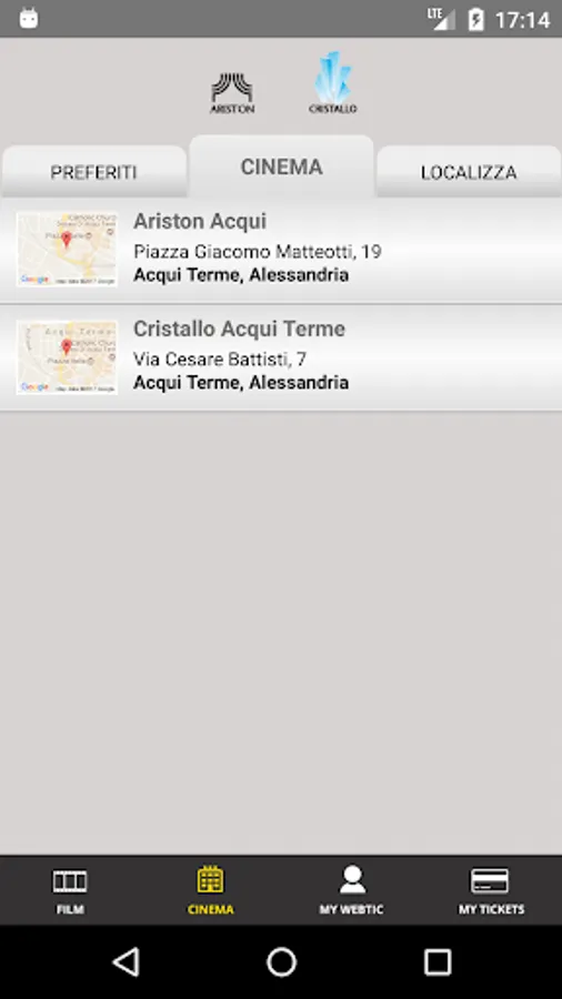 Create Computer Application for the purchase and reservation of seats in cinemas and Crystal Ariston Acqui Terme.
