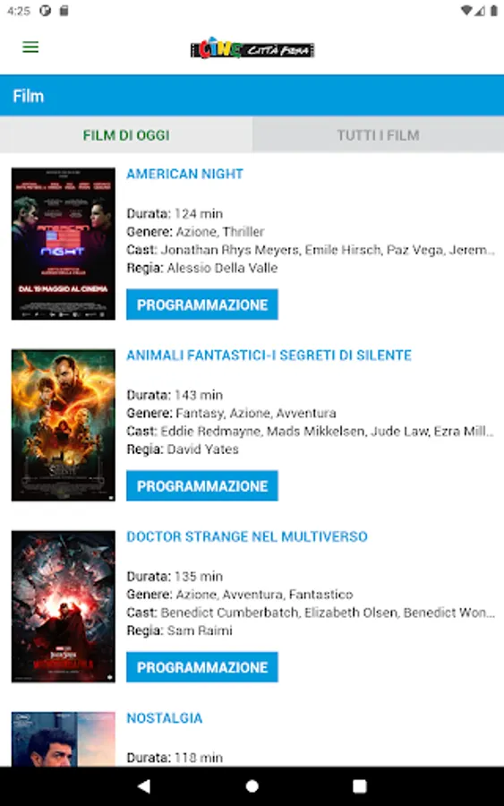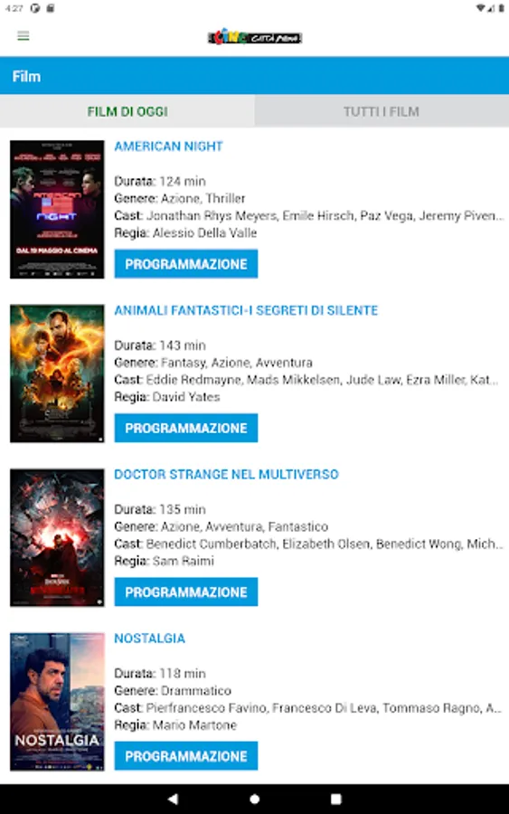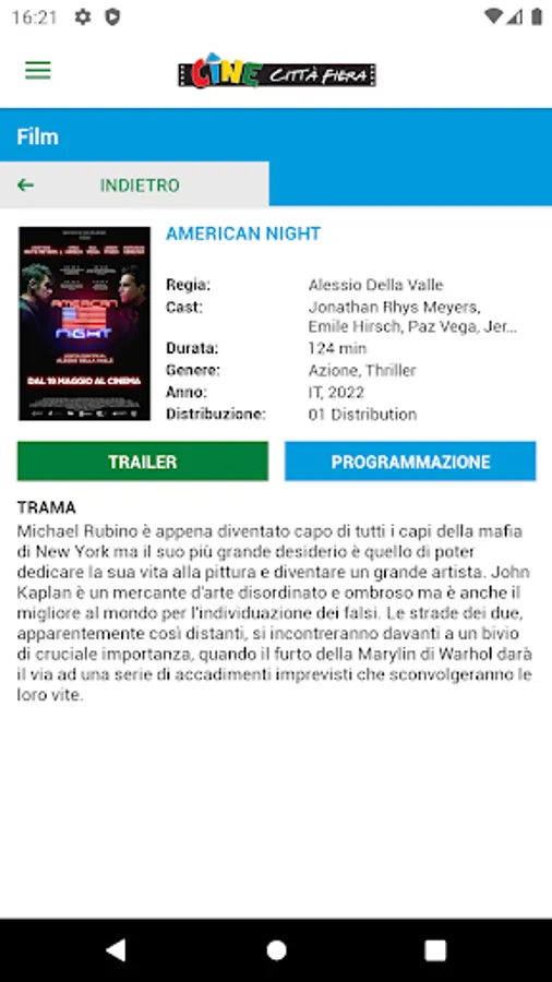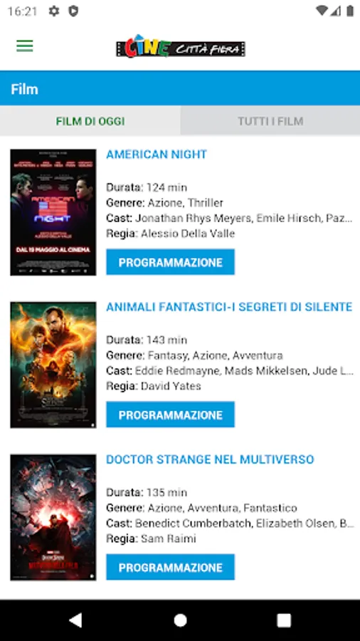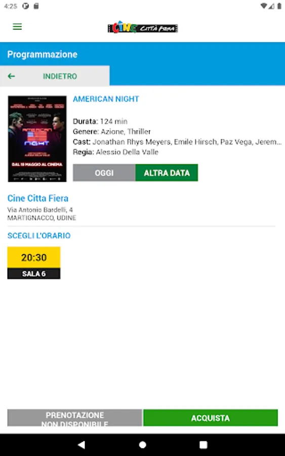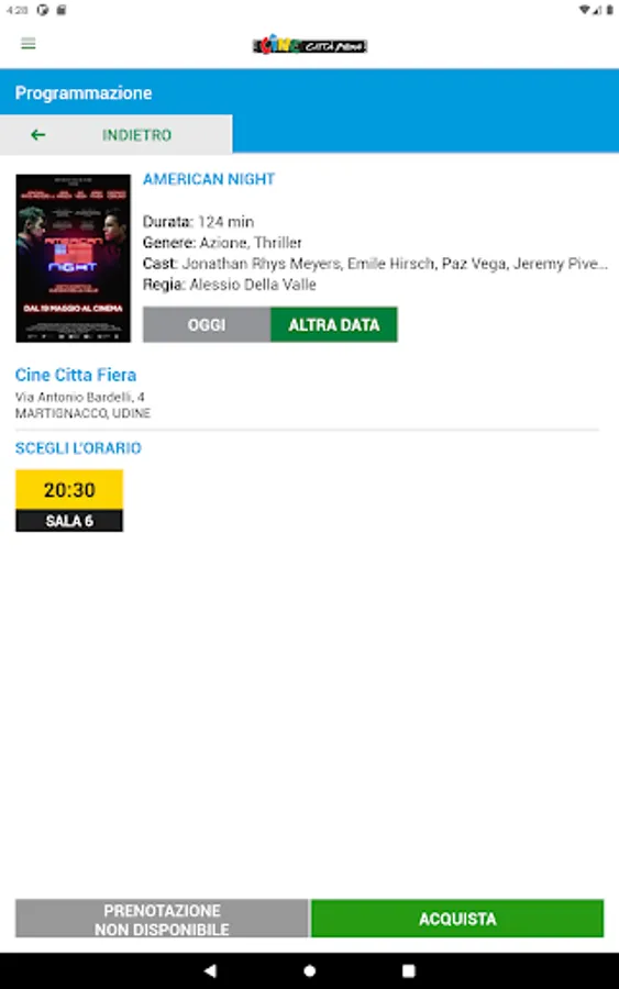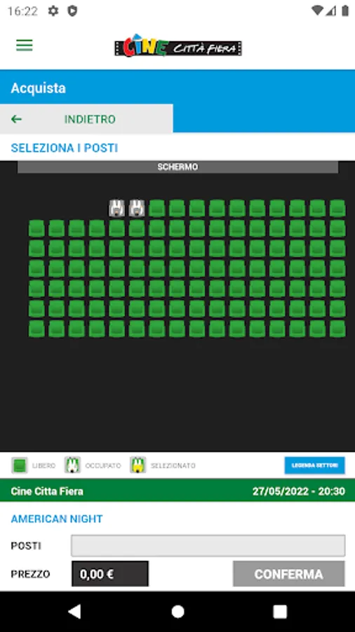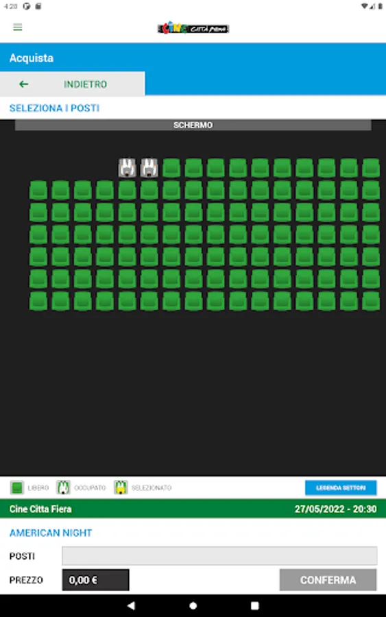 Crea Informatica application, for the purchase by credit card or subscription of seats in the Cine Città Fiera Multiplex.