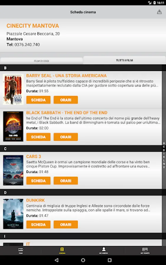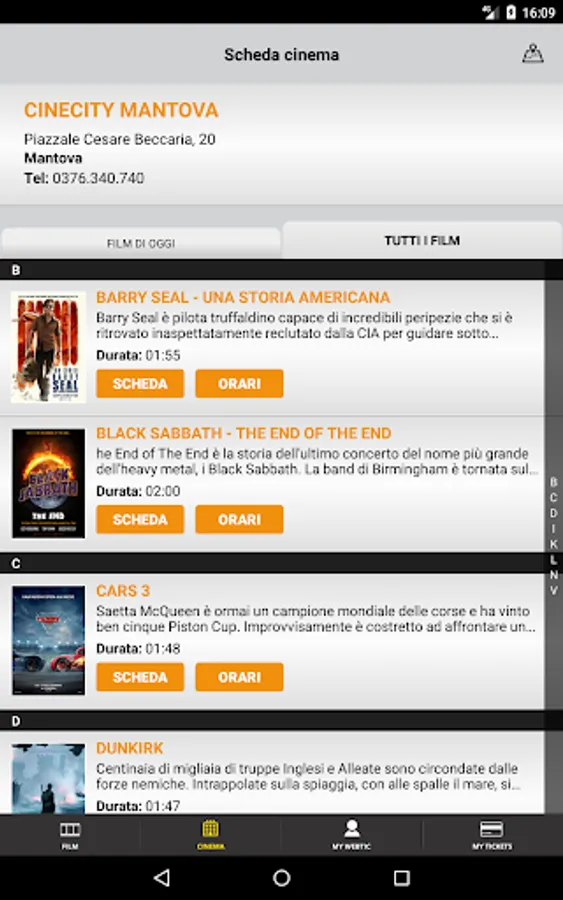 Create application of Information Technology, for the purchase and reservation of seats in the Multiplex Cinecity Mantua Mantua.