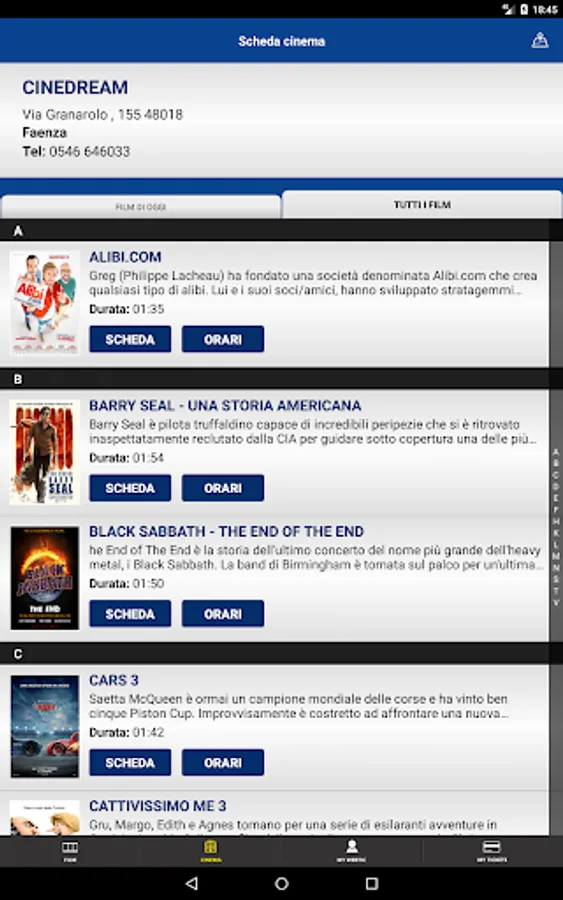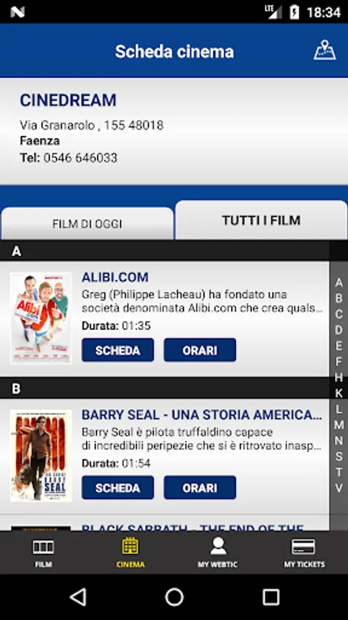 You can easily choose from the map of the rooms your seats and decide whether to book them withdrawing them at the box office at least 30 minutes early.