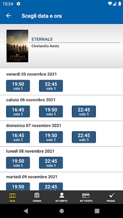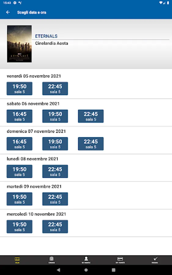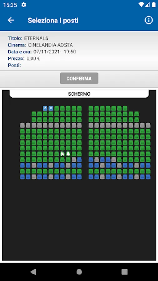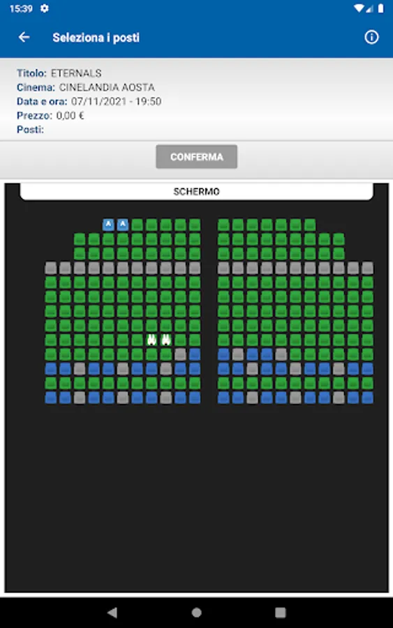 You can easily choose from the map of the rooms your seats and decide whether to book them withdrawing them at the box office at least 30 minutes early.