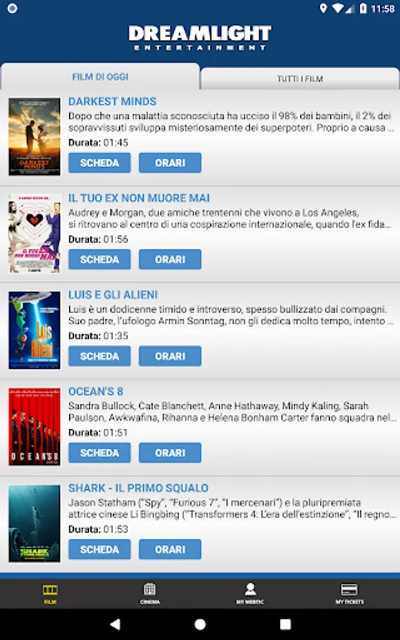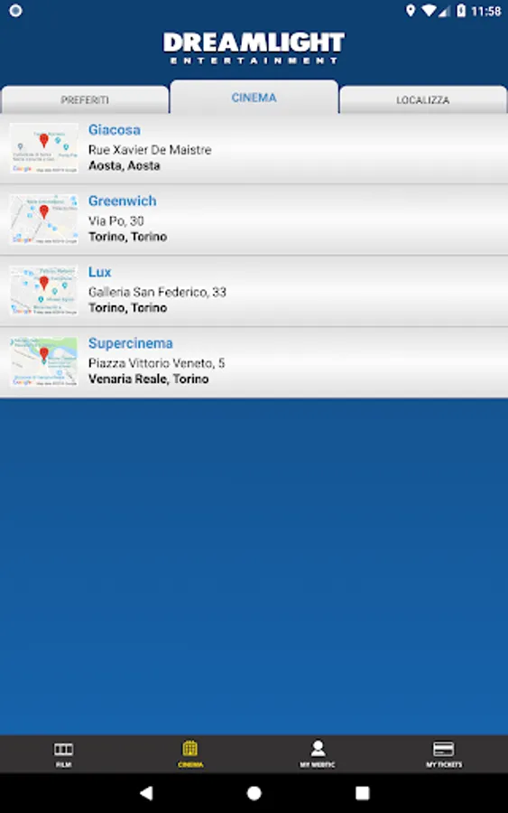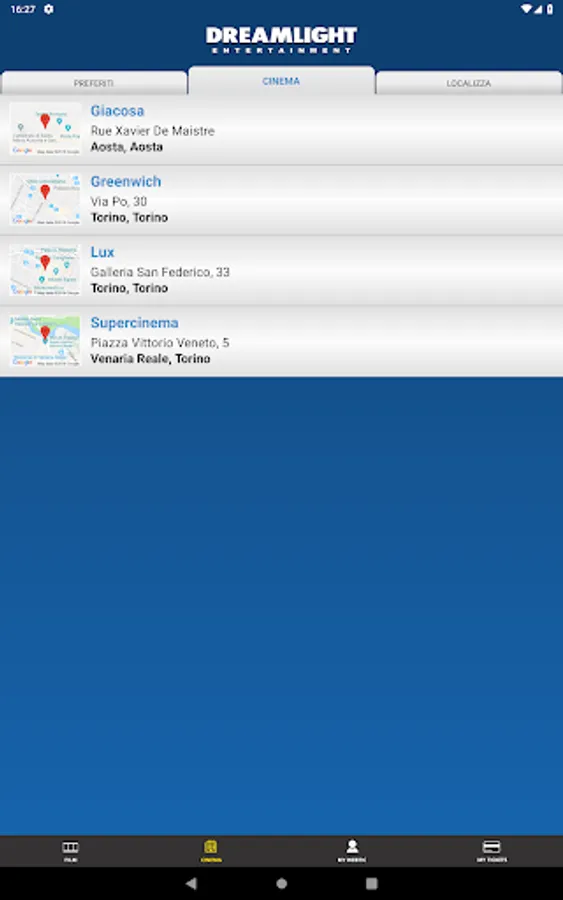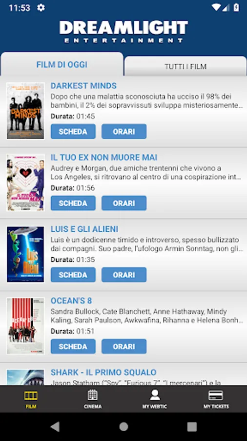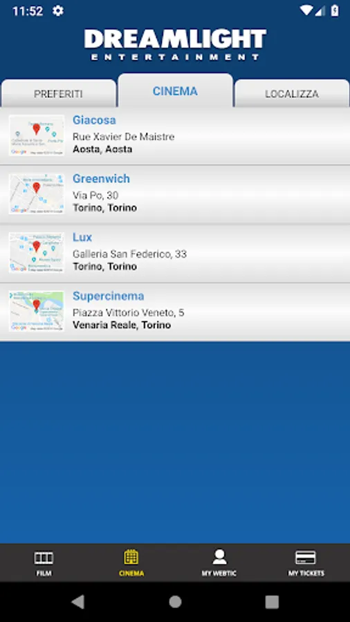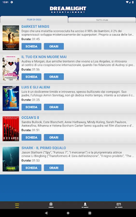 Application for the booking and purchase of seats in the prestigious film circuit: Dreamlight (www.vogliadicinema.it)