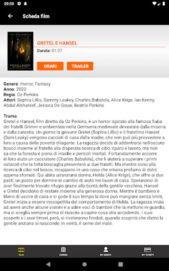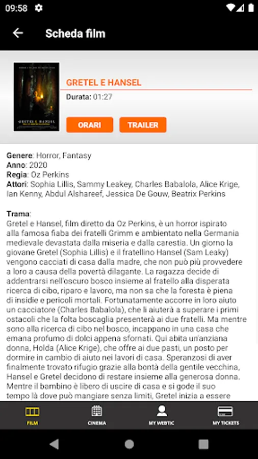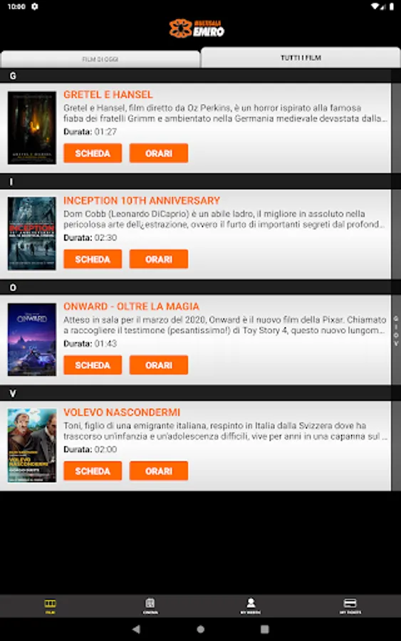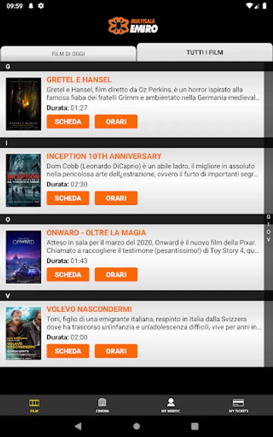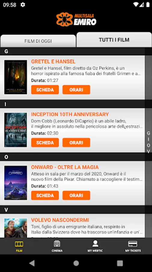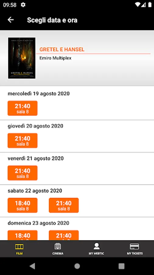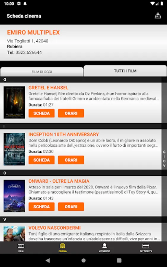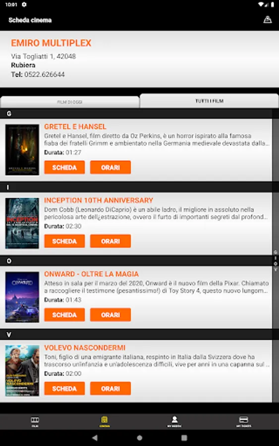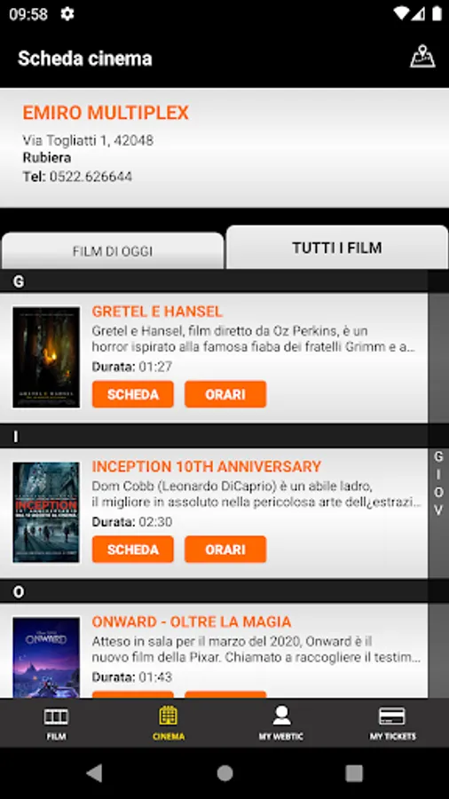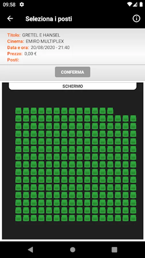 Crea Informatica application, for the purchase and reservation of seats in the Multiplex Emiro di Rubiera (RE)