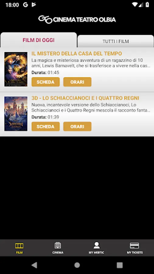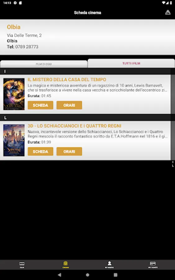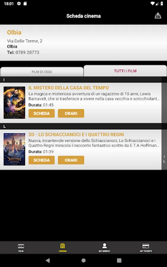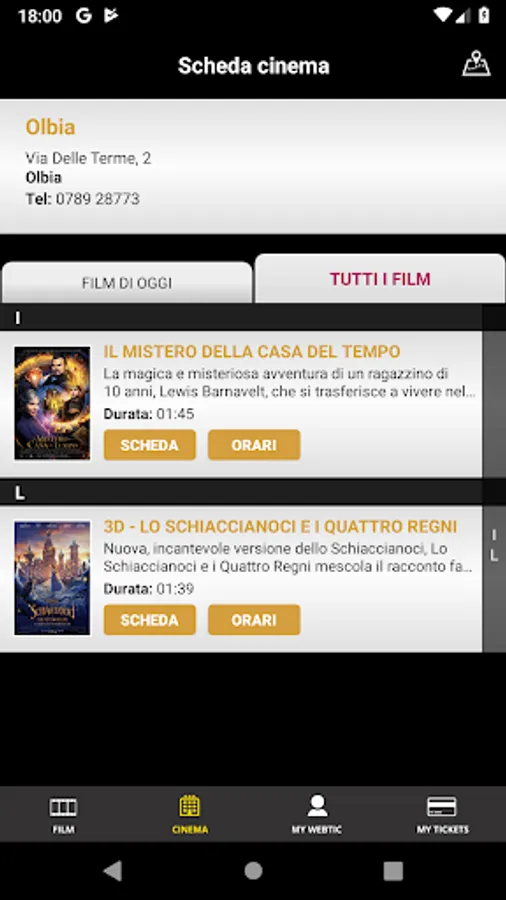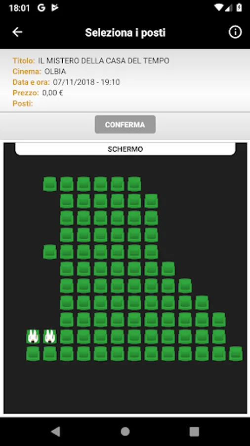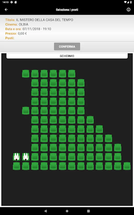Application of Crea Informatica, for the purchase and reservation of seats in the prestigious cinema theater Olbia.