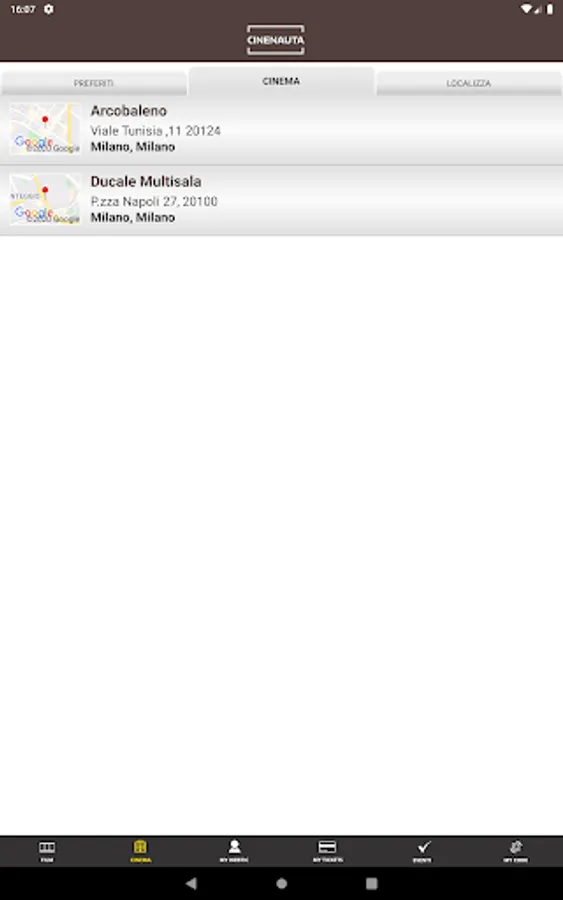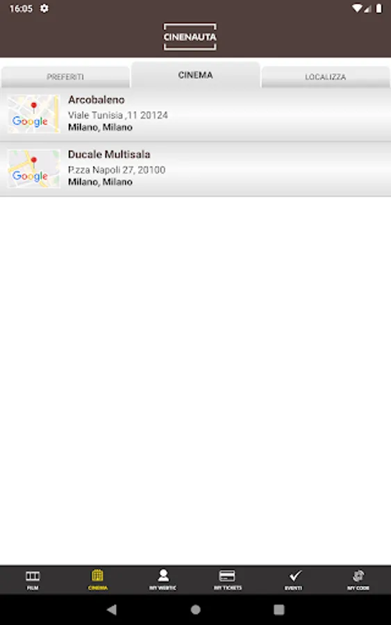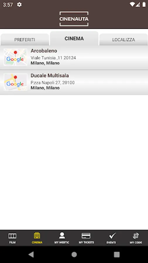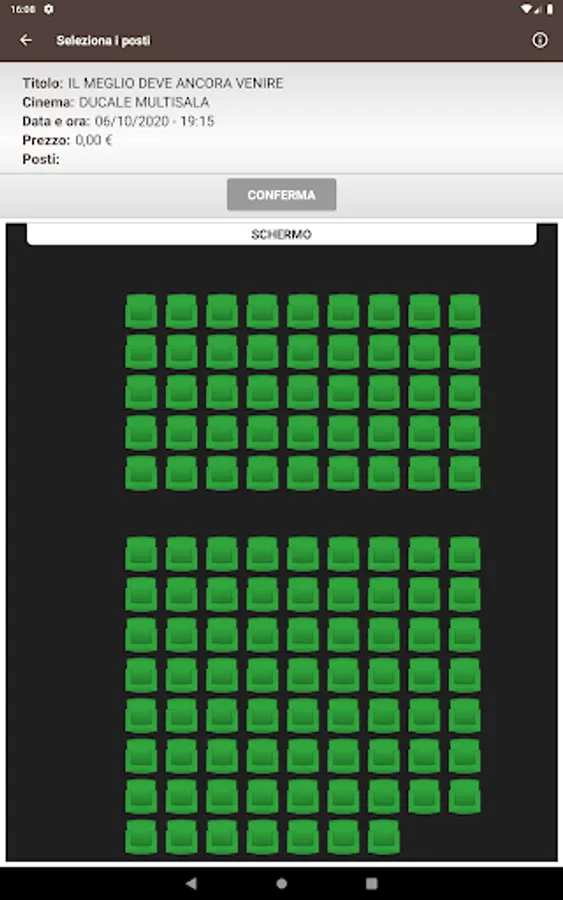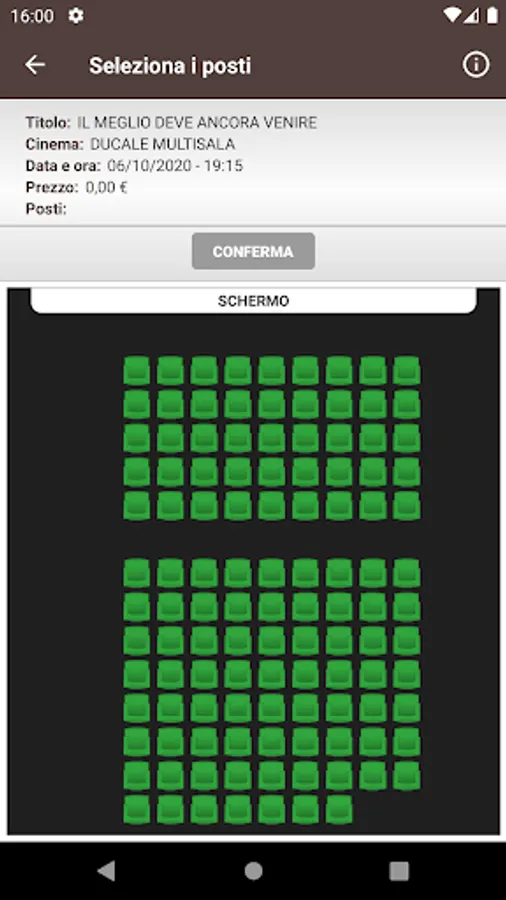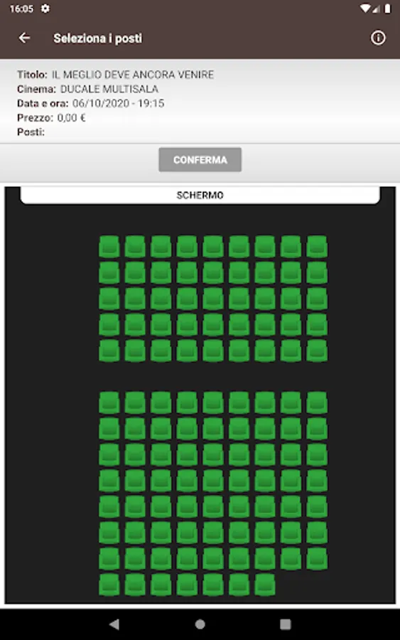 Crea Informatica application, for the purchase and reservation of seats in the Ducale and Arcobaleno multiplexes in Milan.