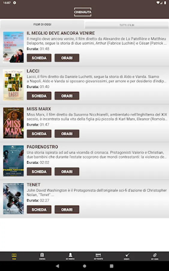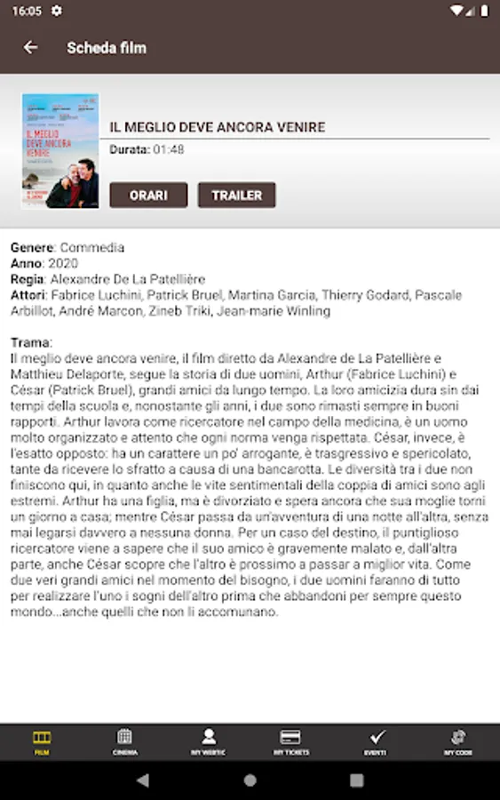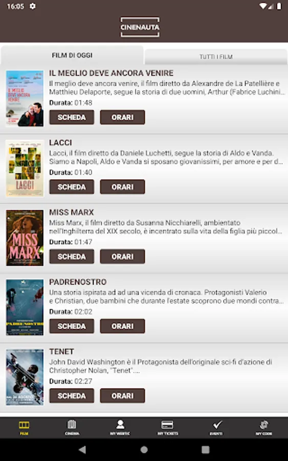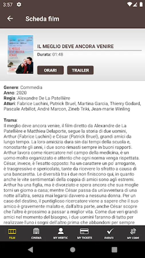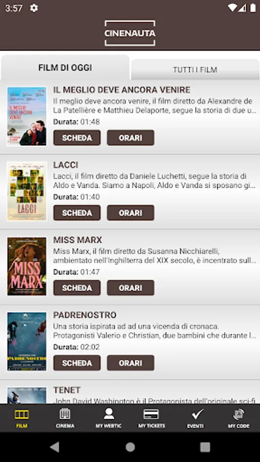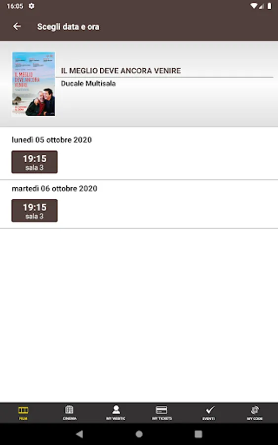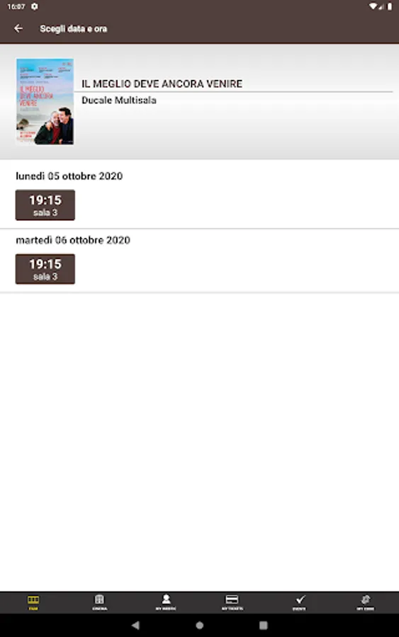 Crea Informatica application, for the purchase and reservation of seats in the Ducale and Arcobaleno multiplexes in Milan.