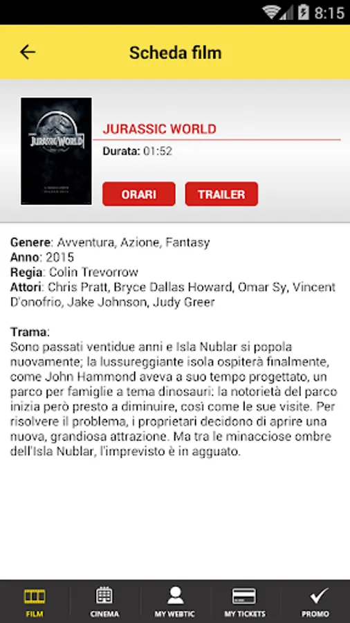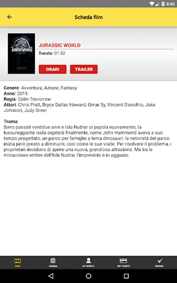 Application to Create Data, for the purchase and reservation of seats in the prestigious circuit Cinepark: