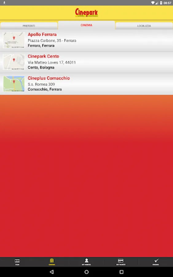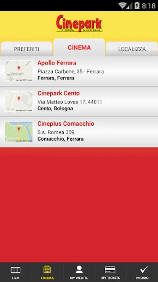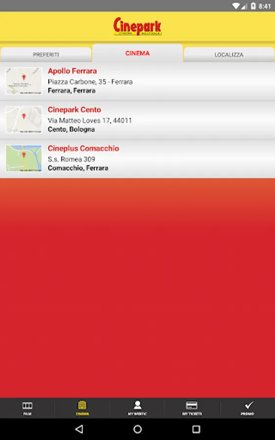 Percent, Apollo Cineplus Ferrara and Comacchio.