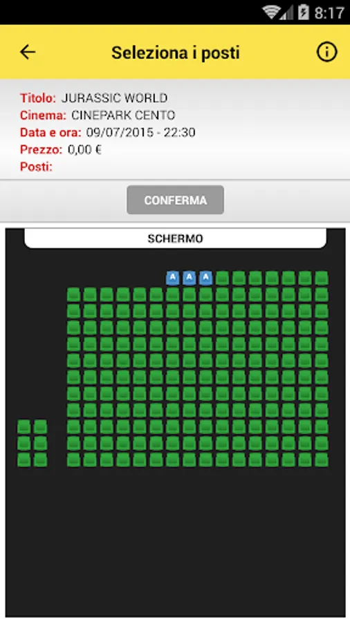 You can choose from the comfort of your seat map of salt and decide whether to book them withdrawing them at the box office at least 30 minutes early.