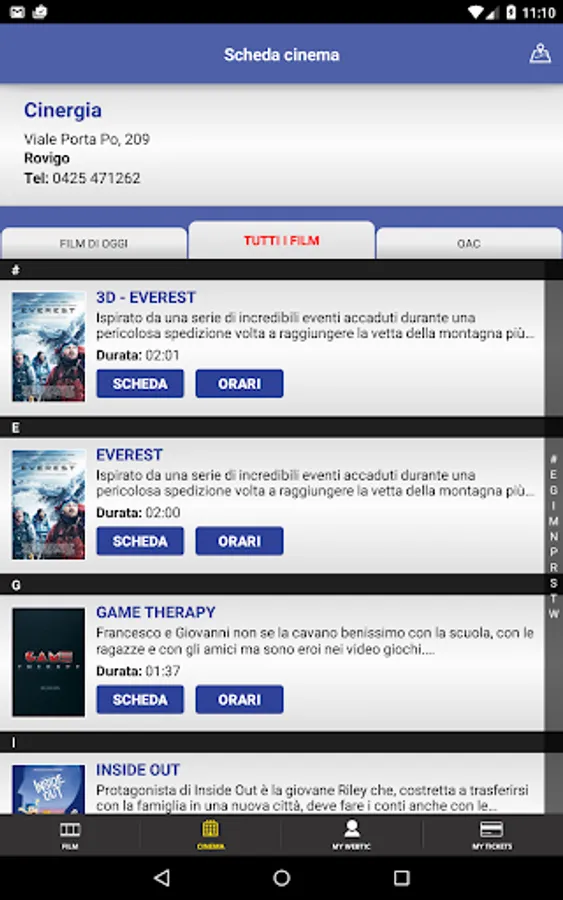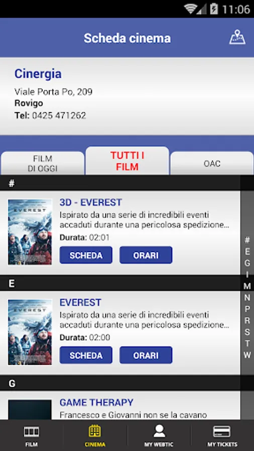 Create Computer Application for the purchase and reservation of seats in the Multiplex Cinergia of Rovigo.