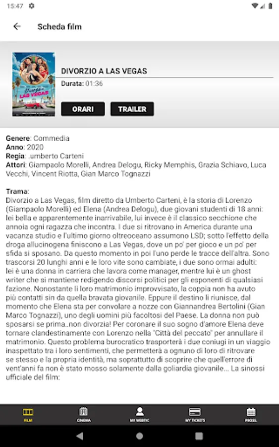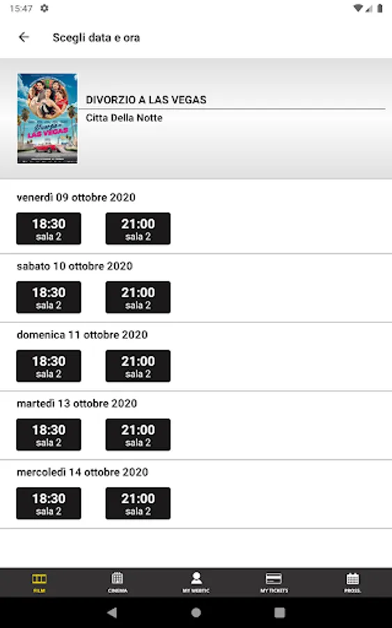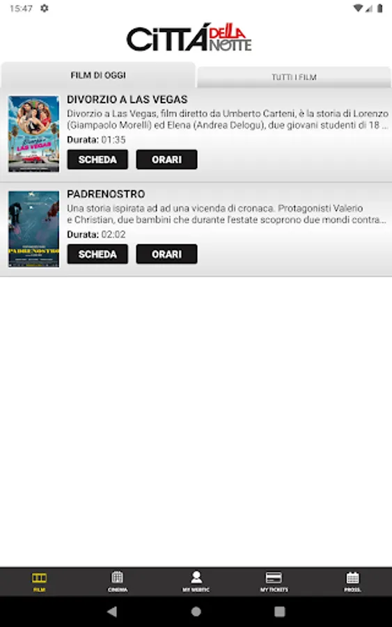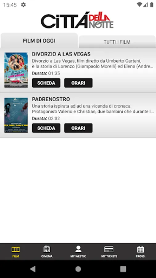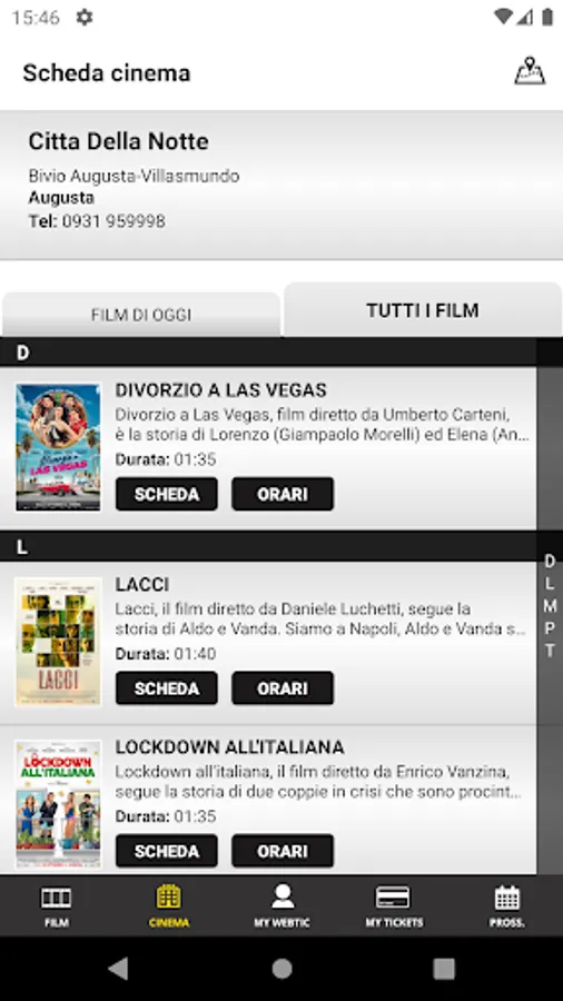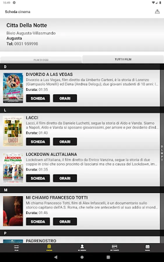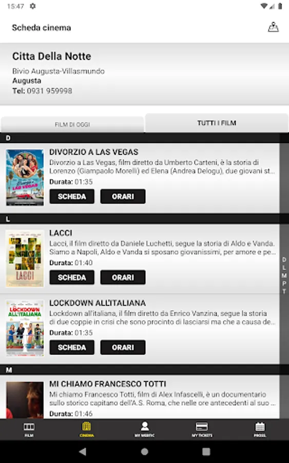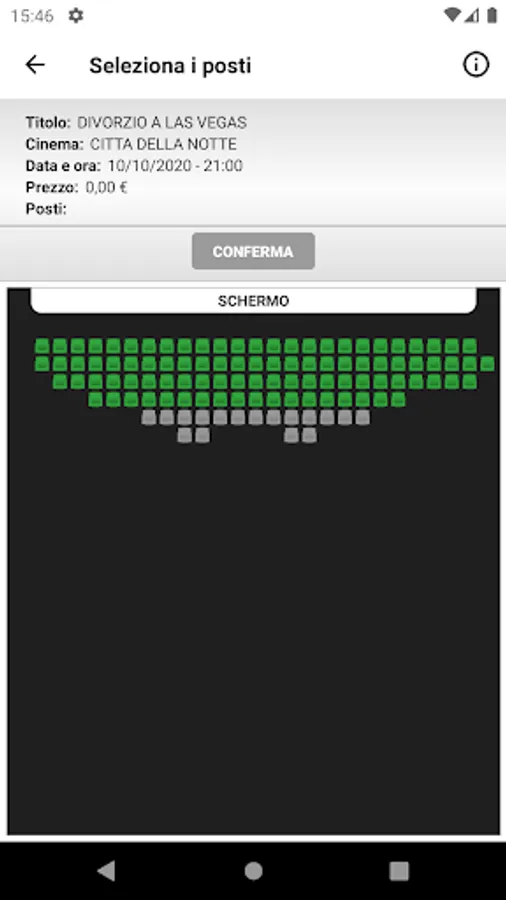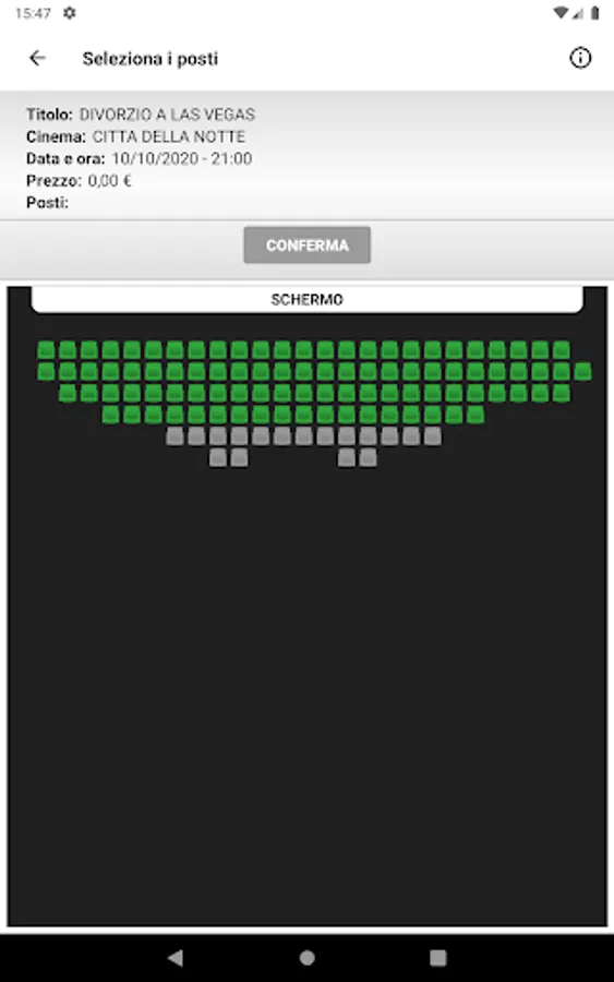 Crea Informatica application, for the purchase and booking of seats in the prestigious cinema Città della notte di Augusta.