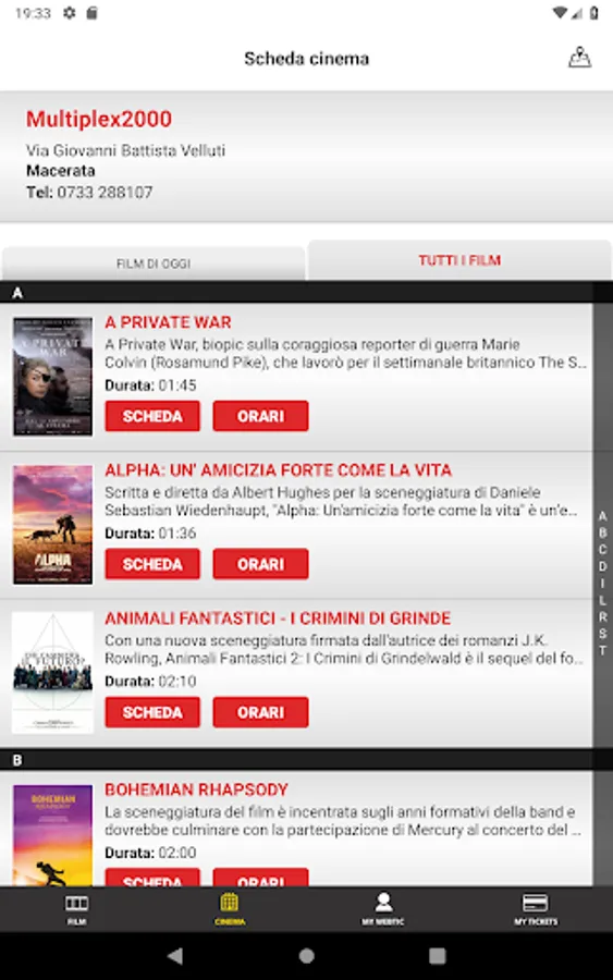 Create Computer Application for the purchase and reservation of seats in the cinema Multiplex 2000 Macerata.
