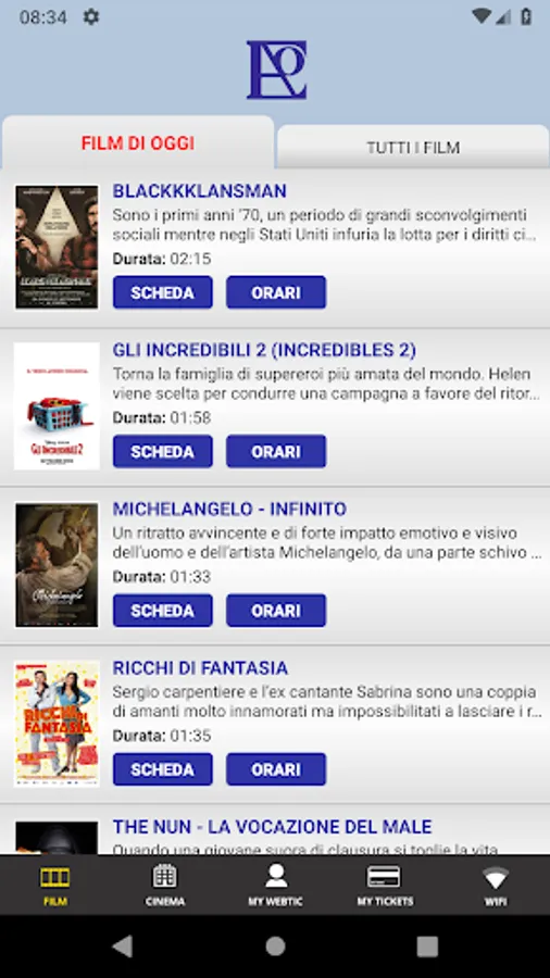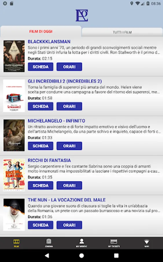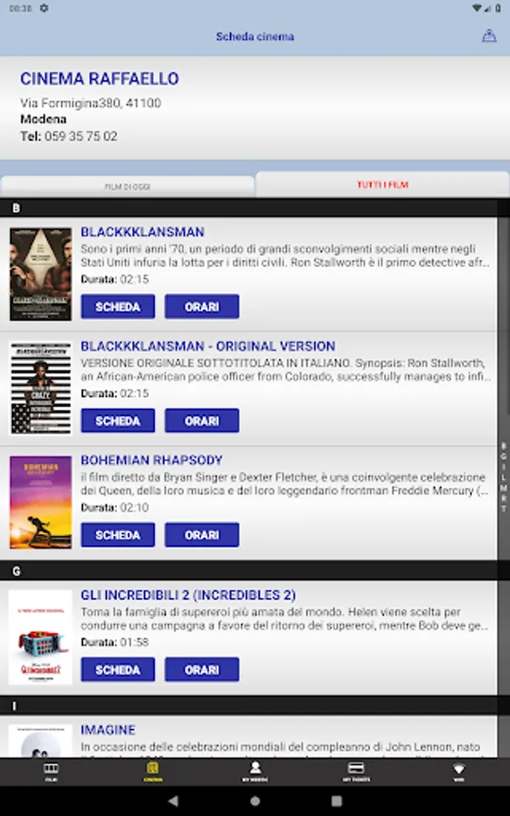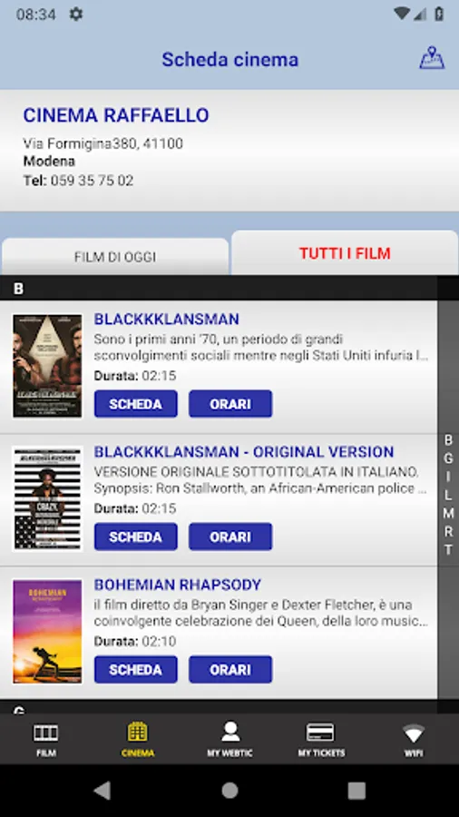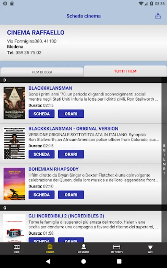 Create application of Information Technology, for the purchase and reservation of seats in the Multiplex Raffaello Modena.